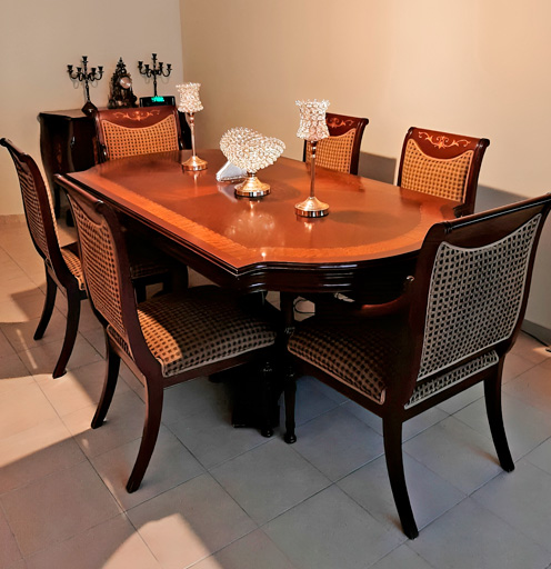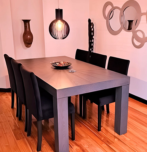Each piece is crafted with solid wood and perfect finishes, ensuring not only an impressive look but also impeccable functionality. Whether for a large dining room or a cozy corner, our designs adapt to your needs and tastes.