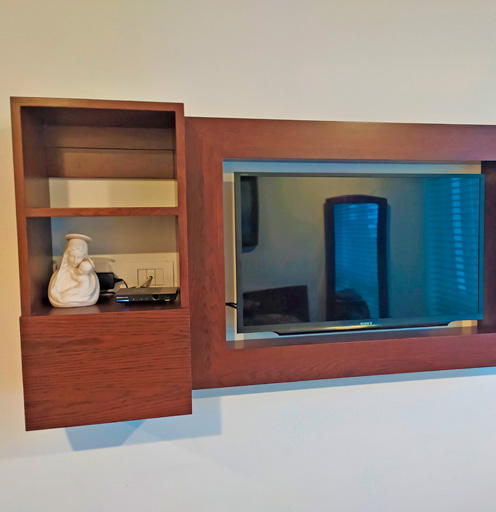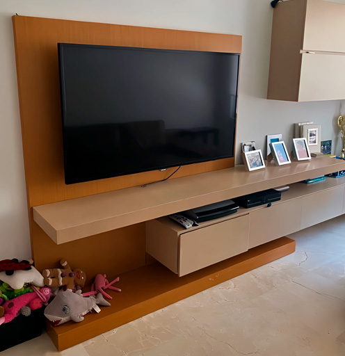 Each entertainment center is made to measure, ensuring a perfect fit for your living room while organizing your TV, consoles, and other devices in an elegant and accessible way.